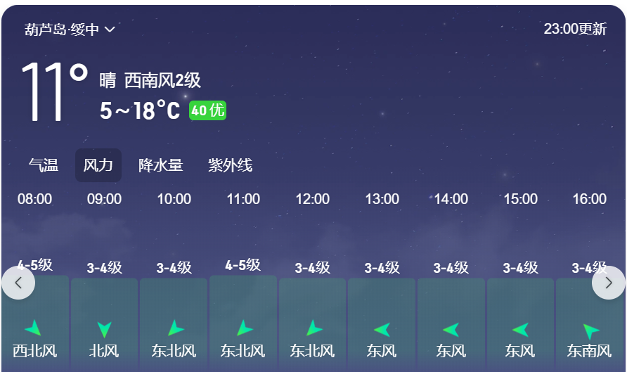 绥中县22日8点后风向情况