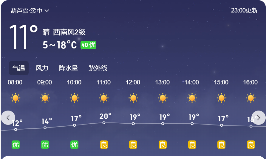 绥中县22日8点后天气情况