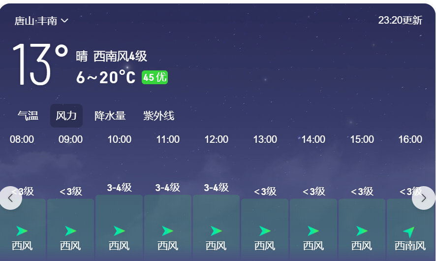 唐山市丰南区22日风力风向情况。