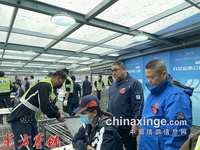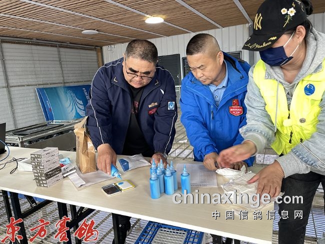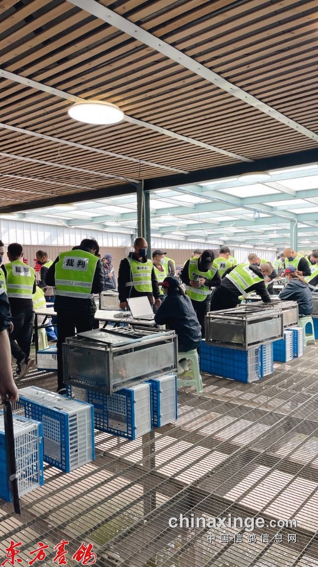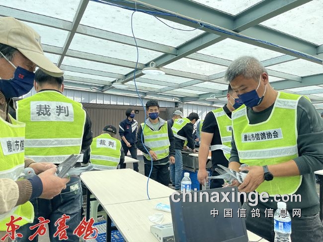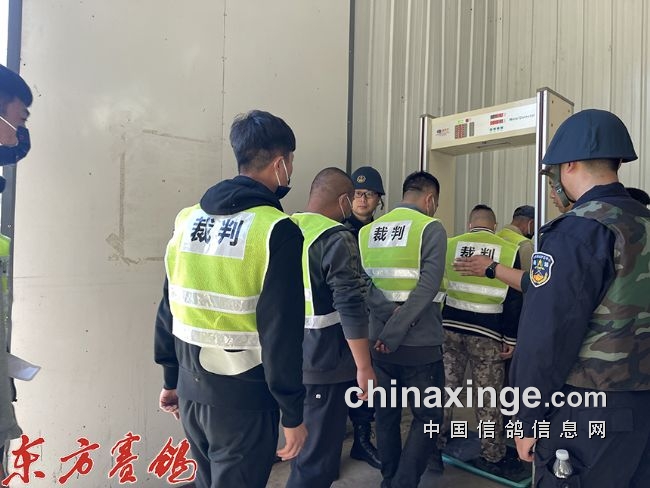 裁判员安检依次进入集鸽现场