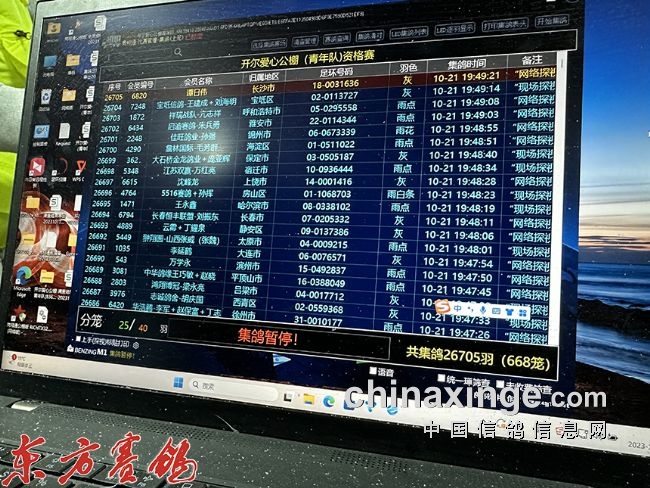 开尔青年队集鸽,13点02分第一羽赛鸽信息扫描上网。