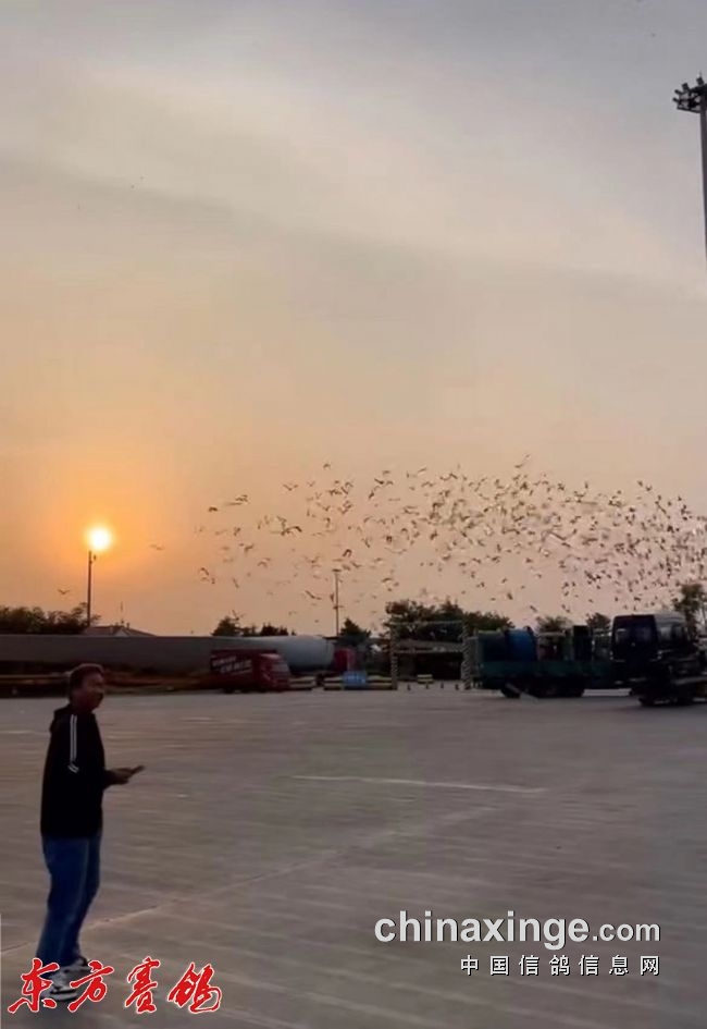 27日早晨,司放地商丘多云,气温12度左右,东北风一至二级,属侧逆风。早上7点11分放飞,赛鸽从司放车两侧争先恐后而出,未作盘旋,直奔家的东南方向极速归去,走势好极了!