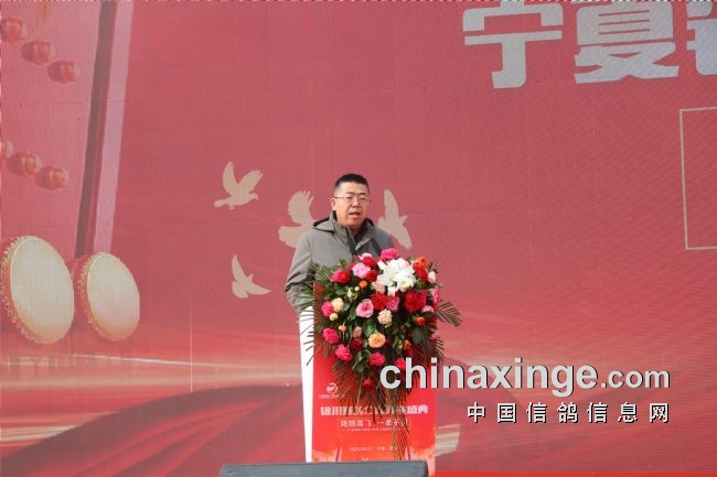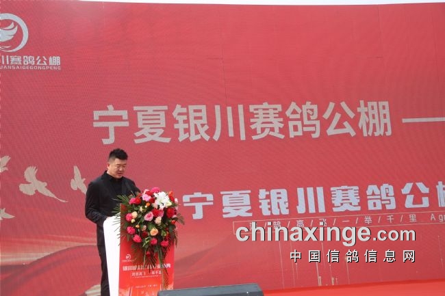 银川公棚董事长杨华发表了诚致热情的欢迎词,他对前来参加典礼的领导嘉宾和给友表示热烈的欢迎,并希望广大鸽友给予积极的大力支持!