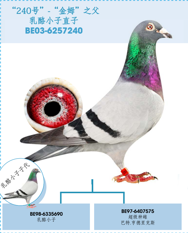 奶酪240:子代“金姆”:盖雷全国14245羽冠军,裘勒汉姆中心鸽王冠军