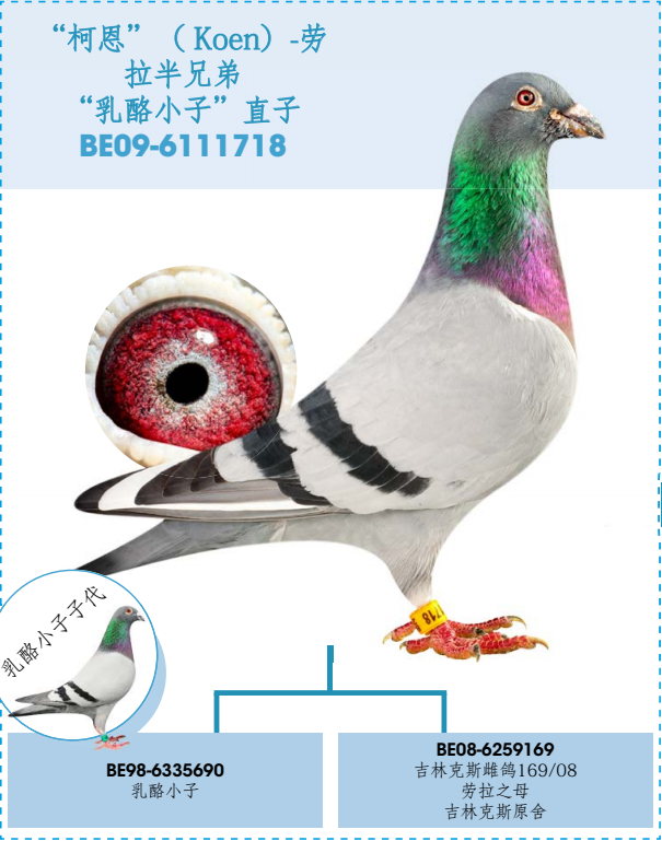 与吉林克斯系雌鸽169作育出柯恩718、卡米尔599(后代2018年KBDB全国大中距离鸽王4位)