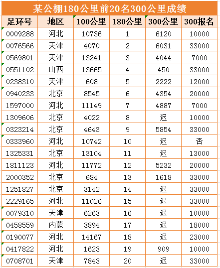看看这些赛场上的小英雄,在久盟公棚的180公里战役里,它们一鸣惊人,轻松摘得头筹。此时,鸽主们整满心期待,它们能在下关争金夺银。但猜猜怎么着?剧情反转来得太快。180公里夺魁小将,在300公里赛事中竟黯然失色。有的迟归,有的名落孙山。押错宝的鸽友们,心里那叫一个五味杂陈,哇凉哇凉的。
