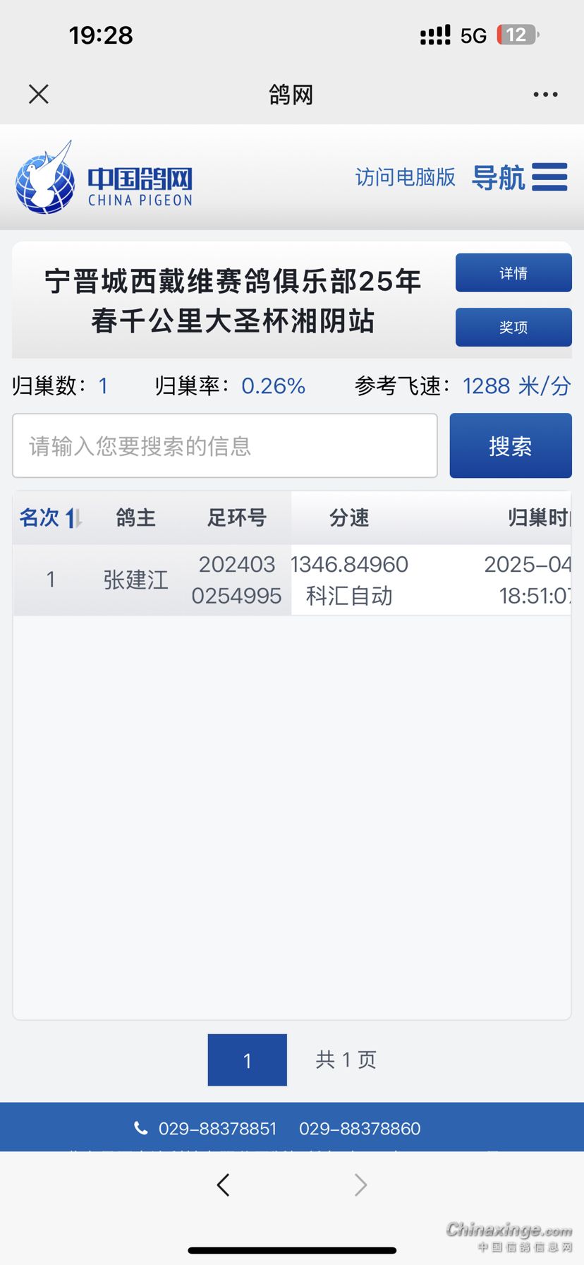 宁晋城西戴维赛鸽俱乐部25年春千公里大圣杯,司放地距俱乐部1001公里,与25年春4月3号早上6点32分开笼,天气晴南风2级,开笼当日18点51分冠军归巢,鸽主张建江,分速1346米/分,又一年实现千公里当日归。 发布时间:2025/4/4 11:22:59