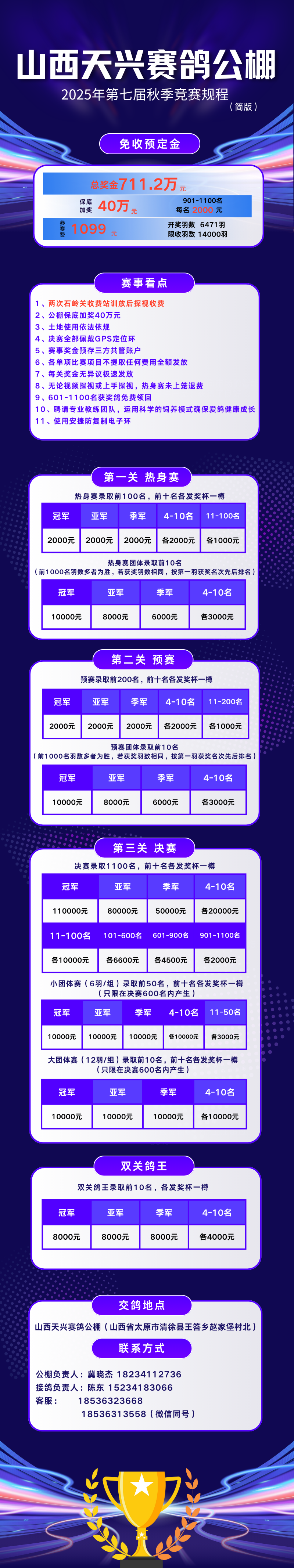 山西天兴赛鸽公棚位于山西省太原市清徐县王答乡,赵家堡村,优越的地理位置,优质的服务理念,优厚的赛事保障,给鸽友创造一个公平竞技的赛事平台