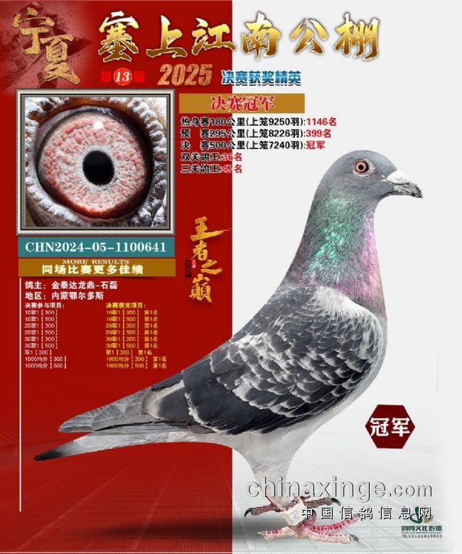 当宁夏的戈壁精英遇上广东的岭南飞将,究竟是哪些赛鸽在激烈的紧张中拔得头筹?今天,让我们一起走进宁夏与广东两地的决赛冠军鸽,欣赏它们的卓越风采与辉煌战绩。