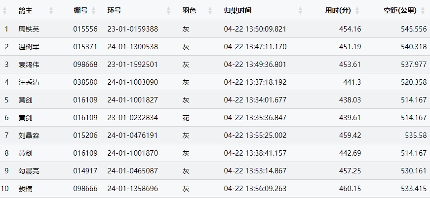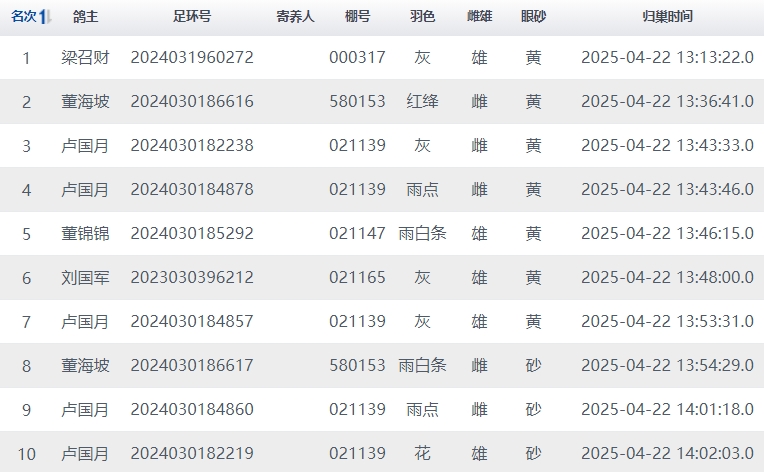 点击链接查看归巢数据: