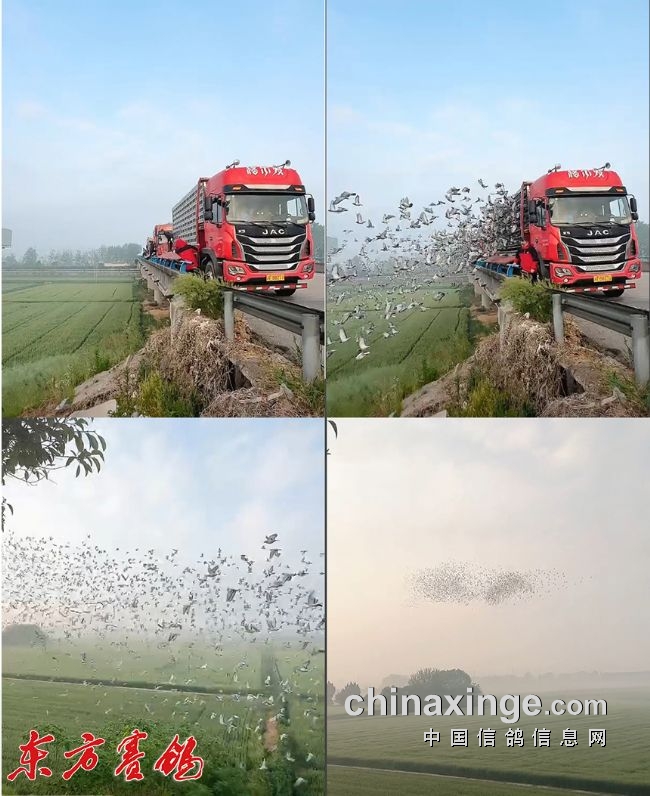 开笼:气象预报司放地东台市今天是阴转雾,清晨那是一片浓雾缭绕的朦胧景色。日出时间是5点19分,可太阳羞答答地不肯露脸。至6点左右,人们才等来了穿过云层的第一缕阳光。6点21分,阳光将浓雾稀释成了薄雾,于是开笼了,8753羽赛鸽按捺不住即将自由飞翔的喜悦,争先恐后夺笼而出,在空中稍作盘旋,分作两个军团,在薄雾中朝着东南家的方向浩浩荡荡归去。