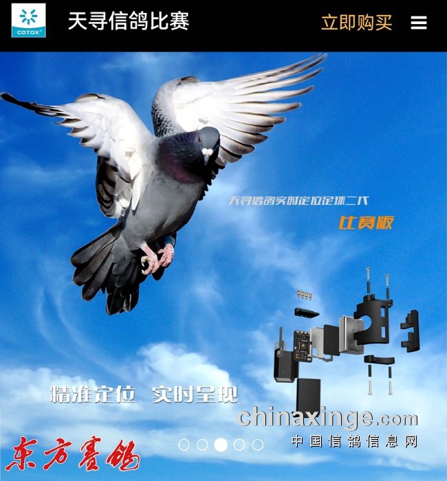 “天寻”卫星实时定位环从赛鸽上笼到归巢或者是丢失,在哪里丢的都能准确定位出来,而且能让参赛鸽友坐在家里通过手机就能知道鸽子的信息。