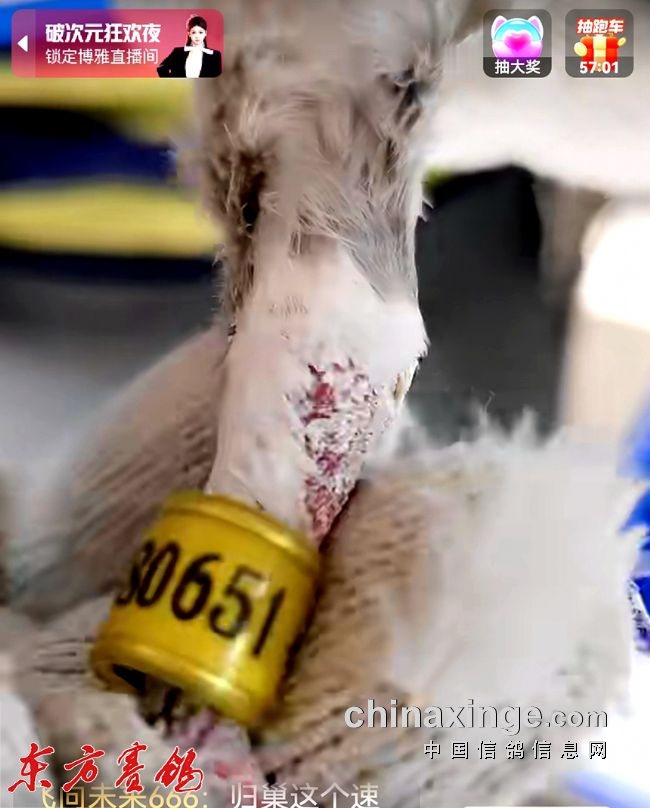 冠军:上海周家吉祥鸽舍-周芦根麾下悍将01-0591296雨点,于10:36:42.790踏响鸽钟摘取桂冠、分速为989.3649米;吉祥鸽舍本关上笼两羽,当日归来一羽夺冠军。
