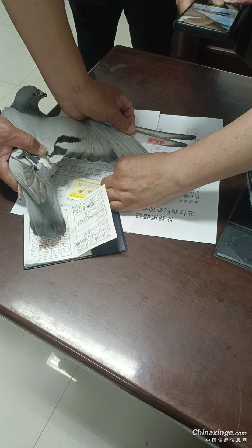 (冠军归巢当日 赵浦手持冠军到达市鸽会进行验鸽)