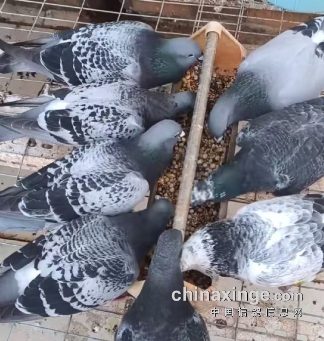 现在虽然条件好了,但我这个习惯没变。一天喂两次,上午一顿,下午一顿,一年四季雷打不动。即使是在出鸽子(育雏)阶段也一样,拆对之后至少撒五遍粮,一点点撒,让它们抢着吃。