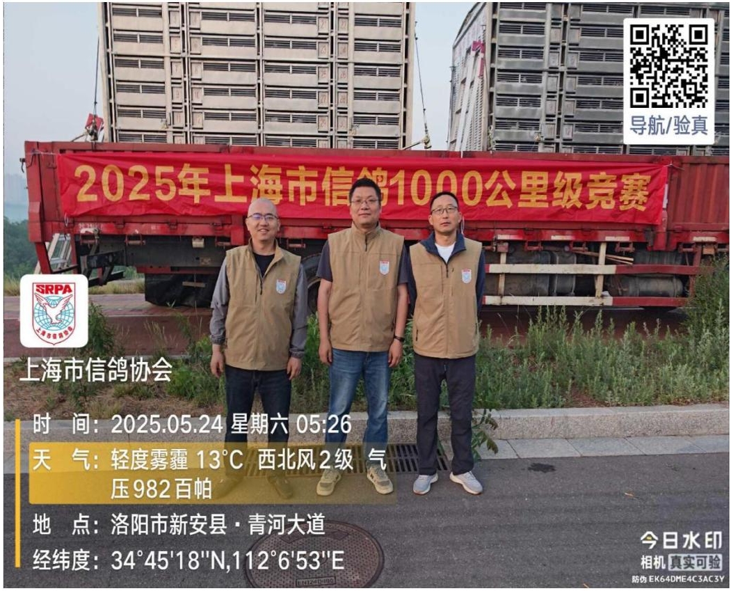 赛事筹备阶段,竞赛委司放团队构建“气象监测-风险研判-动态调整”科学决策链。针对赛线沿途降雨预警,果断将原定5月21日集鸽日推迟至5月22日开展集鸽工作,避免恶劣天气对赛鸽竞翔的潜在影响。通过精准捕捉5月24日河南省洛阳市新安县“气温12℃、西北风1级”的理想放飞窗口,实现空距956.563公里的最优开笼条件,于5月24日清晨5点45分开笼放飞,这一决策过程,体现了对赛鸽生理规律与自然环境的深度结合,最终体现“用数据说话、以规律行事”的科学办赛理念。