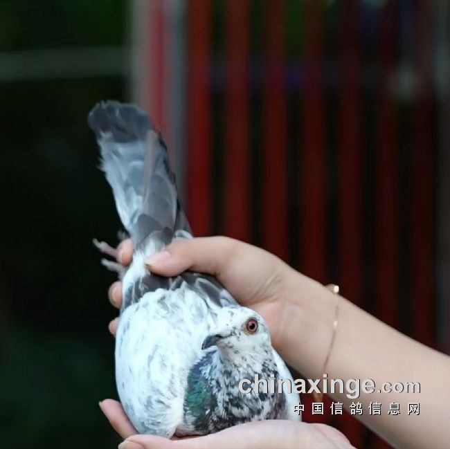 6月9日,川南四市千公里联赛迎来第二羽归巢鸽。这羽鸽子格外引人注目——它是一羽尚未满周岁的麒麟花雌鸽,羽色非常漂亮,体型中等偏小,属于典型的“小炮弹”类型。虽然腔体不算高,但一上手便能感受到它饱满结实的肌肉。它的腰身并不长,这一点和冠军鸽相似。
