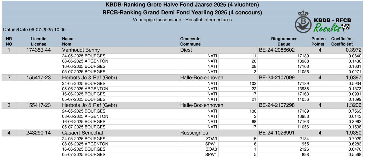25年欧赛赛程过半,名家强豪逐鹿云端,来自开尔的小将BE-24-1026991渐露锋芒,以全国大区一岁鸽5名的成绩完成波治Ⅲ赛事后,凭借另外3场的强势表现,暂排KBDB全国大中距离鸽王殿军!