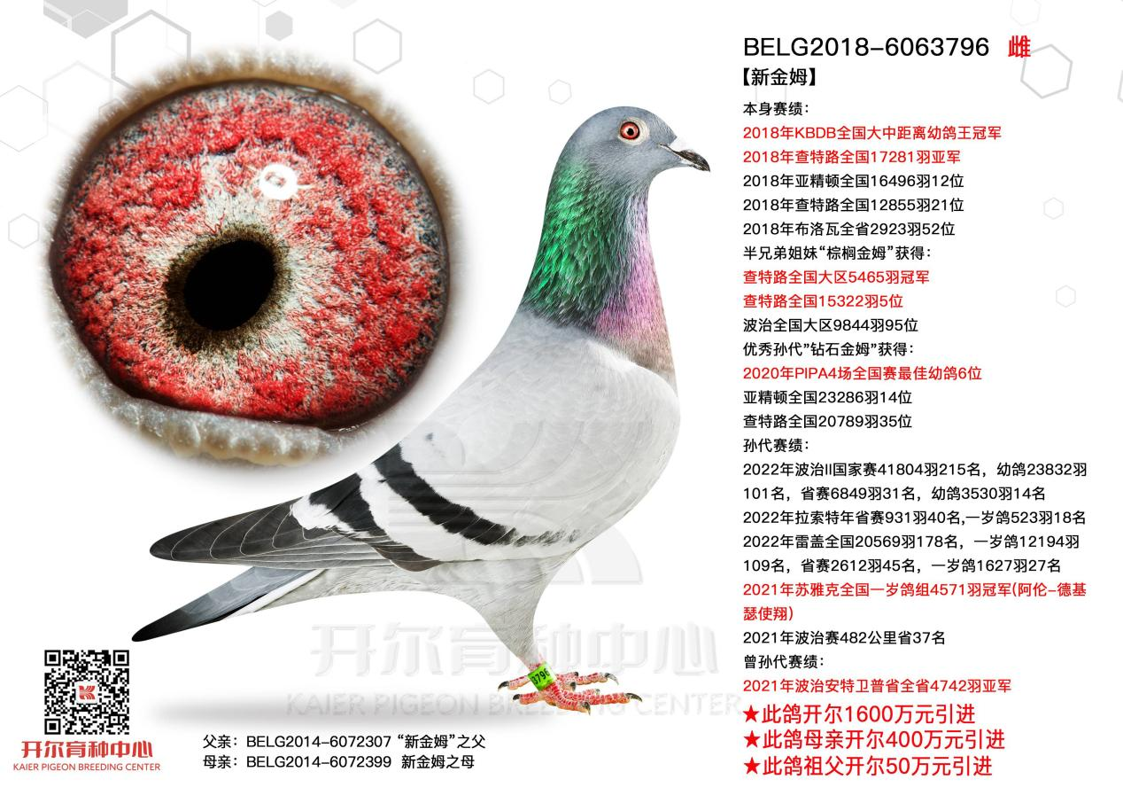 祖母新金姆,奶酪王朝巅峰之作,赛鸽拍卖史上最具价值雌鸽,18年KBDB全国大中距离幼鸽王冠军得主。本届欧赛,新金姆家族横扫短、中、大距离赛场,豪取5冠、2亚、2殿的辉煌战绩!