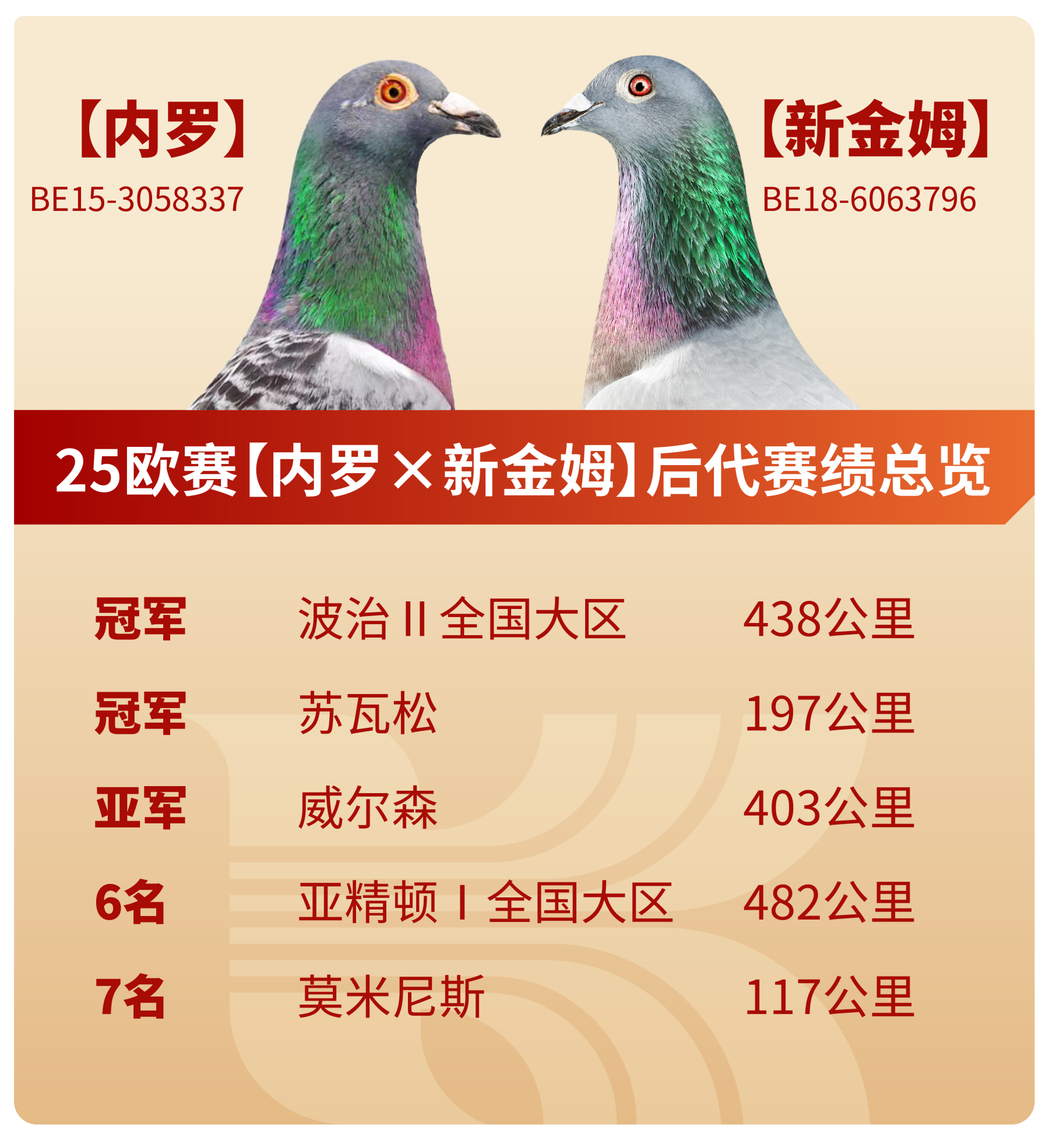 更令人瞩目的是,991并非“内罗×新金姆”这对黄金配对唯一的明星后代。2025年欧赛,它们的三羽后代已合力贡献2冠、1亚、5次前十的显赫战绩!