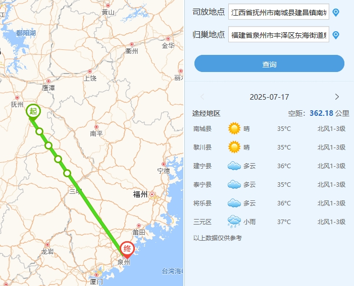 泉州丰泽信鸽协会结束北四关赛之后,又举行了西线赛事的比拼。不同于沿海飞行的北四关,本次西线赛是从江西-福建的西北方向的赛线挑战,地形难度增加的同时,天气也随着夏季深入而显得越发炎热。
