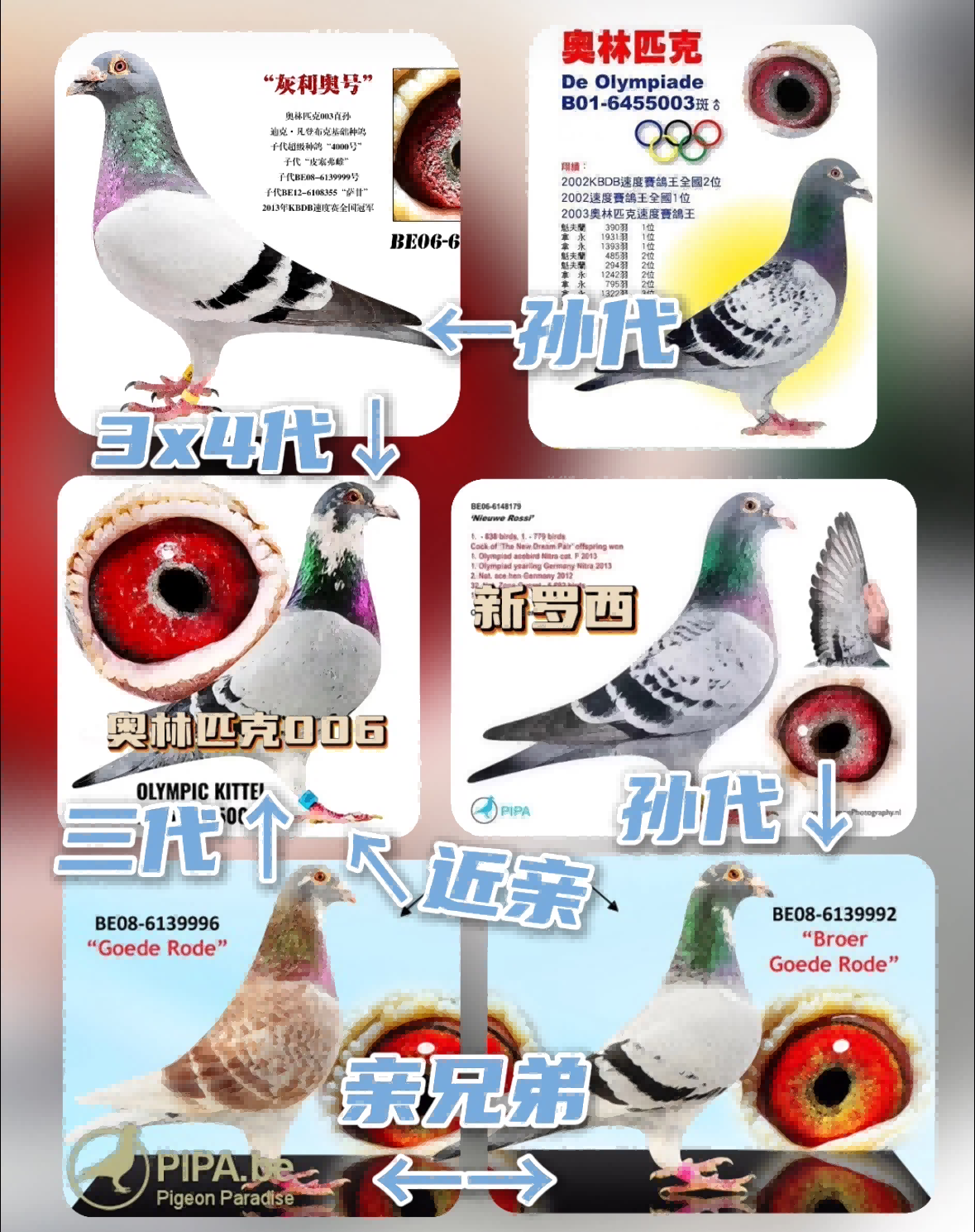 而最后的重点006即是996的三代与992的直女这对新兄弟的近亲,这对亲兄弟又是新罗西的孙代鸽,006也是灰利奥的3代与4代的结合。而灰利奥是003的孙代鸽。这样一来奥林匹克006自身的作育方式就一目了然,想要去延续一个族群就需要完全解析他的构成方式,并不断地创新与完善,而开尔作为奥林匹克006族群的延续者,也正在保留原汁原味的同时,不断地加入更多的优秀基因。