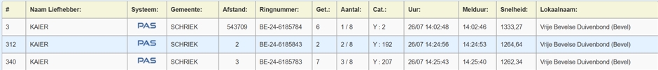 7月26日亚精顿III国家赛正式打响,开尔在这场比利时强豪云集的赛事中脱颖而出,一举获得全国5812羽一岁鸽亚军!