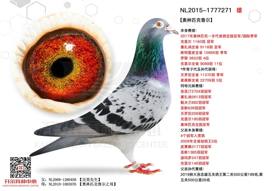 父亲“奥林匹克鲁尔”获得过3场大羽数比赛的冠亚季军,最终荣膺17年奥林匹克一岁鸽代表鸽全国亚军、国际季军。其父亲“完美先生”本身获得4次中距离赛冠军,是超级种雌“宇宙小姐”直子。其母亲为奥林匹克全能代表鸽亚军“灰无敌”的直孙女。