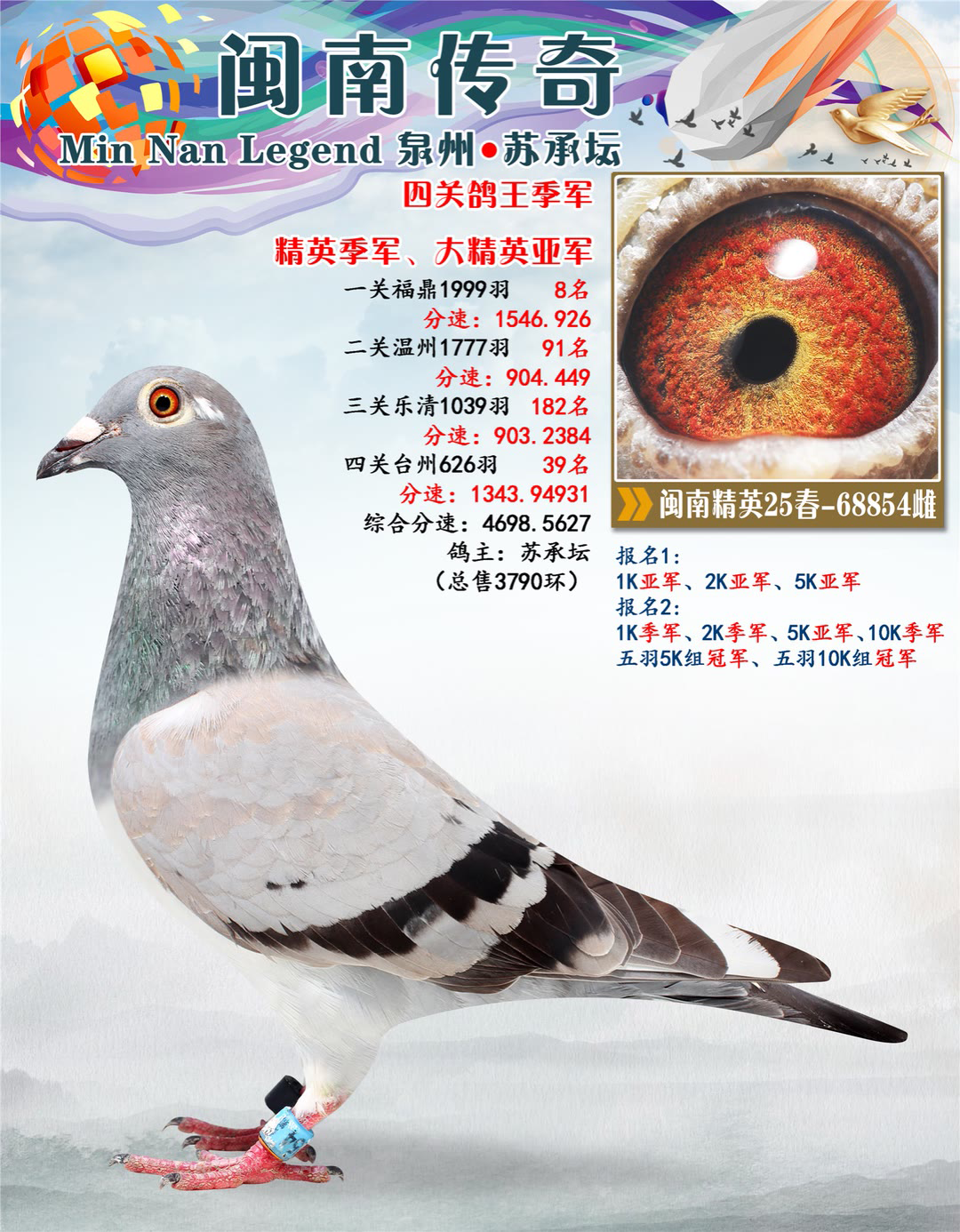 鸽王殿军(苏承坛):则以首关44名、二关38名、三关205名、四关35名完赛,最终摘得殿军;