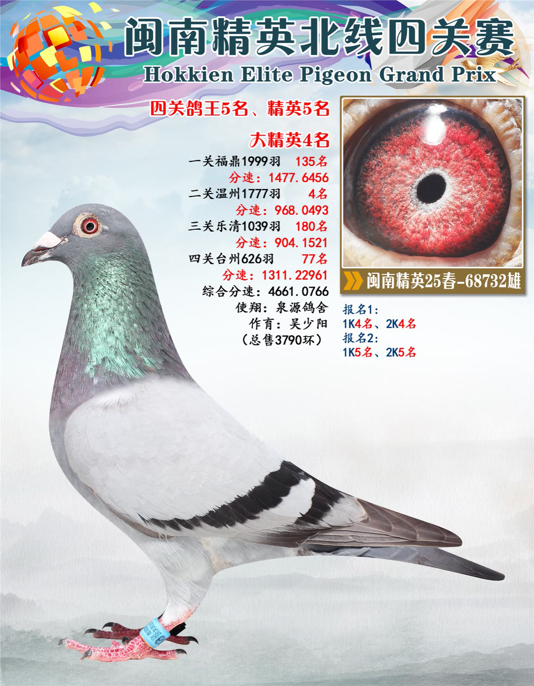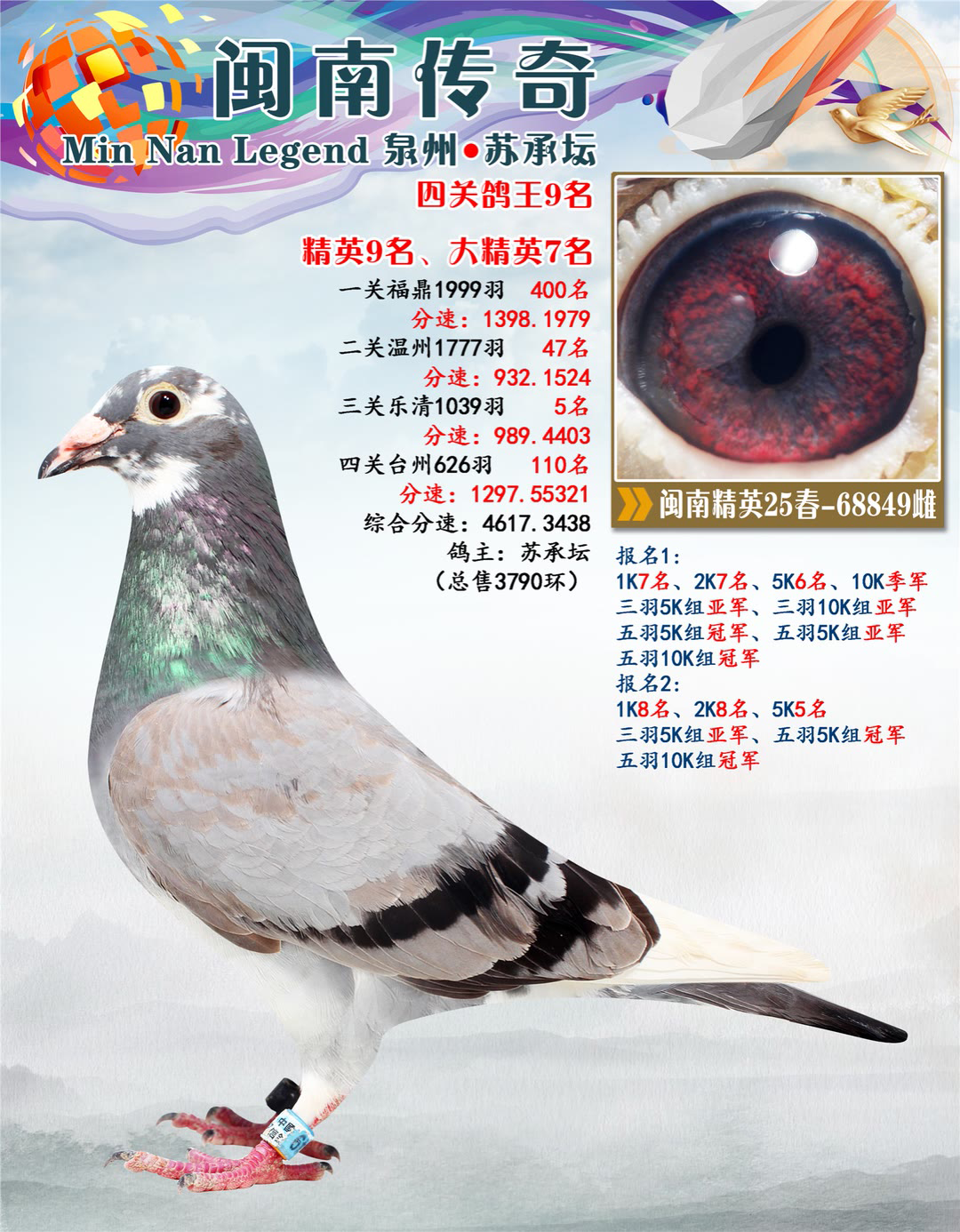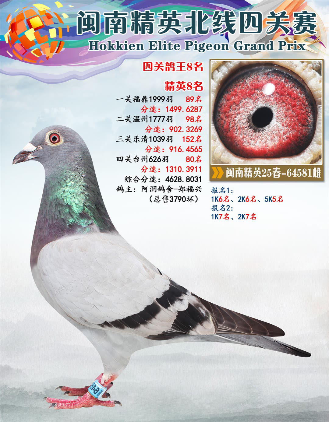 鸽王五名(泉源鸽舍):以首关135名起步,二关飙升至第4名,三关180名,最终以四关77名完赛,夺得鸽王五名。
