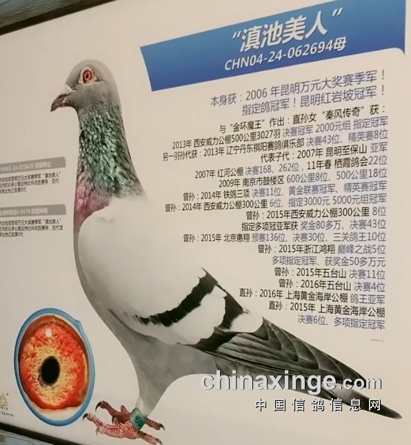 提到滇池美人这个血系的特点,杨东华介绍:滇池美人最大的特点是溶血性超级强。还有一个特点是它的二代、三代鸽在500km-800km空距、1200米/分左右分速的赛事中表现突出常能飞高位,但在短距离速度赛上稍逊。