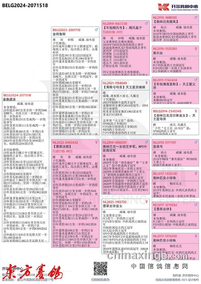 BELG2025-1086435全国大区幼鸽147,省赛68。