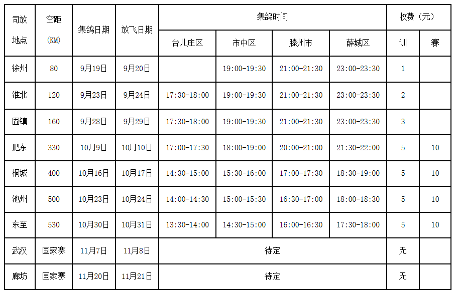 山东滕州市信鸽协会:首场比赛将于10月开启。