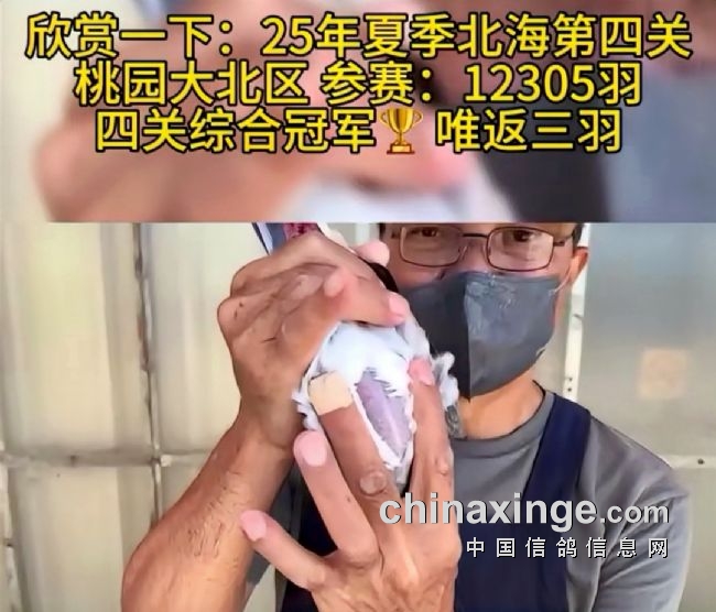 值得一提的是,桃园大北区有三羽赛鸽成功归巢。该区赛季初共派出12305羽赛鸽,至此仅剩3羽归来,足见此程之艰险。