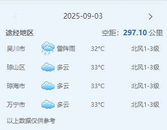 早晨6时36分,220羽小将司放湛江吴川,参考空距300公里。司放地吴川今日有雷阵雨,沿线天气以多云为主,北风1-3级。从赛线上来看,整体成西北东南走向,需跨越沿海滩涂、琼州海峡、海南东部丘陵,海陆交替的复杂地形以及海上多变风向,让这300公里的路程充满不确定性。
