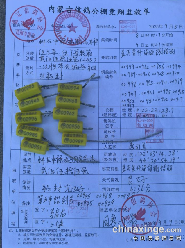 秋赛热潮席卷南北,比赛征程令人振奋!9月9日,内蒙古与四川两家公棚同日开笼,共放飞赛鸽超2万羽,群鸽冲天,气势恢宏,拉开了新一轮竞翔大战的序幕。