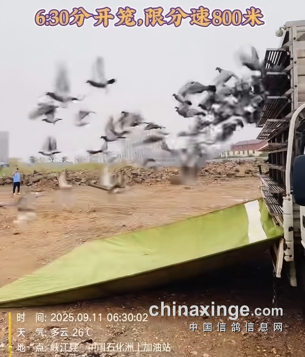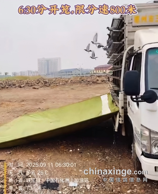 早晨6时30分,随着司放员一声令下,决赛准时开笼。来自69舍242羽赛鸽从江西吉安陕江县出发,向着远方飞去。