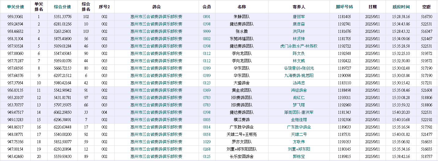 高温、逆风、暴雨天,今年的三合诚秋赛关关难度拉满。在经历了前五关的艰苦比拼后,9月11日,惠州三合诚赛鸽俱乐部2025年秋赛迎来了决胜时刻——第六关绝杀关!从最初售环万枚到决赛仅两百羽上笼,比赛堪称“千军万马过独木桥”,竞争的激烈程度可见一斑。