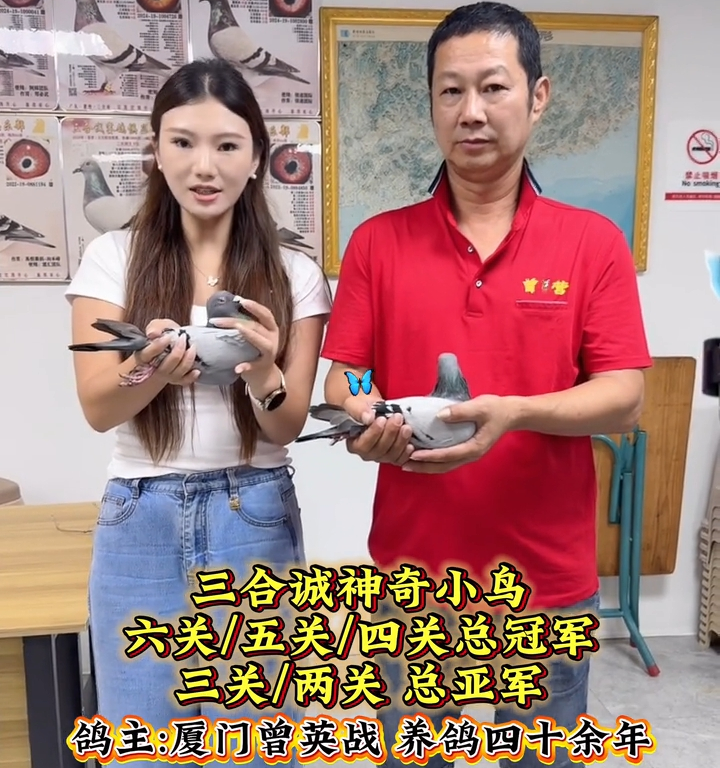 曾鸽友来自福建厦门,从1986年开始养鸽。在采访中欣喜地表示,这两羽鸽子相当于是送给自己养鸽40年的礼物。他介绍道,这两羽赛鸽有四分之一恒源詹姆士北京开创总冠军血统,融合了自己土生土长的詹森,桑杰士血统鸽;父亲是伯马赛成绩鸽,母亲是留种晚生鸽,家族中也飞出了伯马成绩鸽,妥妥的实战家族!