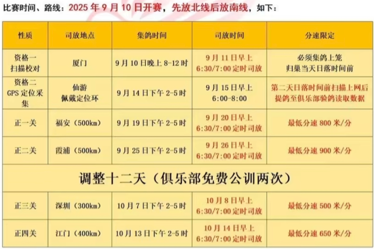 9月11日清晨六点半,广东汕头顺翔俱乐部2025年秋季南北四关赛资格一开赛,本次司放厦门,参考空距177公里,共集鸽3258羽。直播链接>>