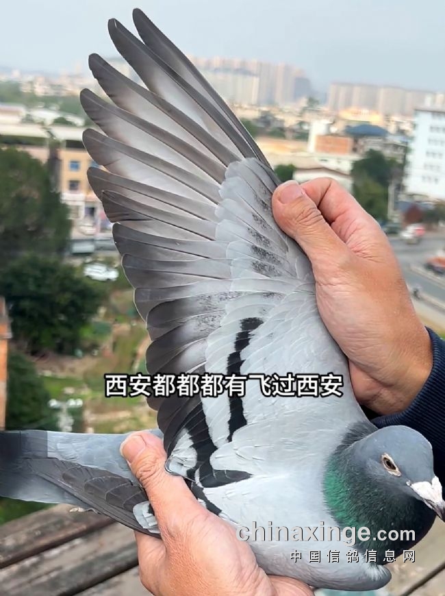 第三,体型合适。它是一羽中小体型的雌鸽,膀条漂亮,破风好,飞行效率高。很多人说主羽三根等长的鸽子飞得稳,它正好具备这个特点。