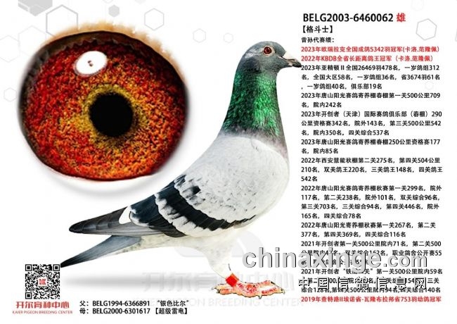 母亲“最爱卢克”则是吉林克斯的超级种母,集核心品系于一身,其父亲“卢克”曾获亚精顿全国万羽冠军,其母亲“我的最爱”则是吉林克斯招牌鸽“格斗士”的直女。