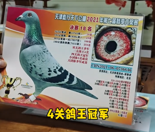 去年我交费36个还是37个鸽子,飞了11个。当然你跟人家大户没法比,咱也不比。我说的是,不管3000、5000、1万的棚。年年都有进奖,就说明你的家族不错,个体基本上到位。