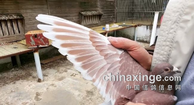 现在“红色浪漫”已经退役做种鸽了。它是一羽小体型、中等腔体的雌鸽,上手手感极好,特别柔顺。眼睛非常漂亮,眼砂粗实有神,一看就是有内涵的种鸽。骨架粗壮,耻骨闭合得特别紧,一字尾,羽条宽大。这些细节,都是好种鸽的标志。我现在正用它做近亲配,让它和它的侄子配对,进一步提纯这路优秀的基因。