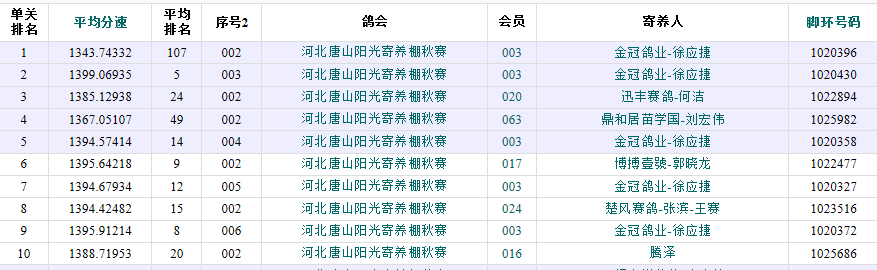 虽然是500公里比拼,但归巢情况十分整齐划一。从12点36分开始,10分钟内共有77羽赛鸽归。在激烈的前三名竞争中,3号棚金冠鸽业-徐应捷名下两羽赛鸽神勇非常,拿下冠军、亚军。环号分别为1020396、1020430。最高分速1397.6893米/分。不仅如此,前十名中他一共进奖5羽,包揽半壁江山!