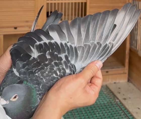 我也是学习这个神州辉煌王玉爽王总的理念,他给鸽友们分享,要尽量用中等略大一点,身子长一点,腔体要厚实一点的好,因为那边是顺风的比较多,鸽子太小了,太轻了,大风会把鸽子吹跑了。我们要肯定要借鉴嘛,交鸽子的时候按这个标准就行啦。
