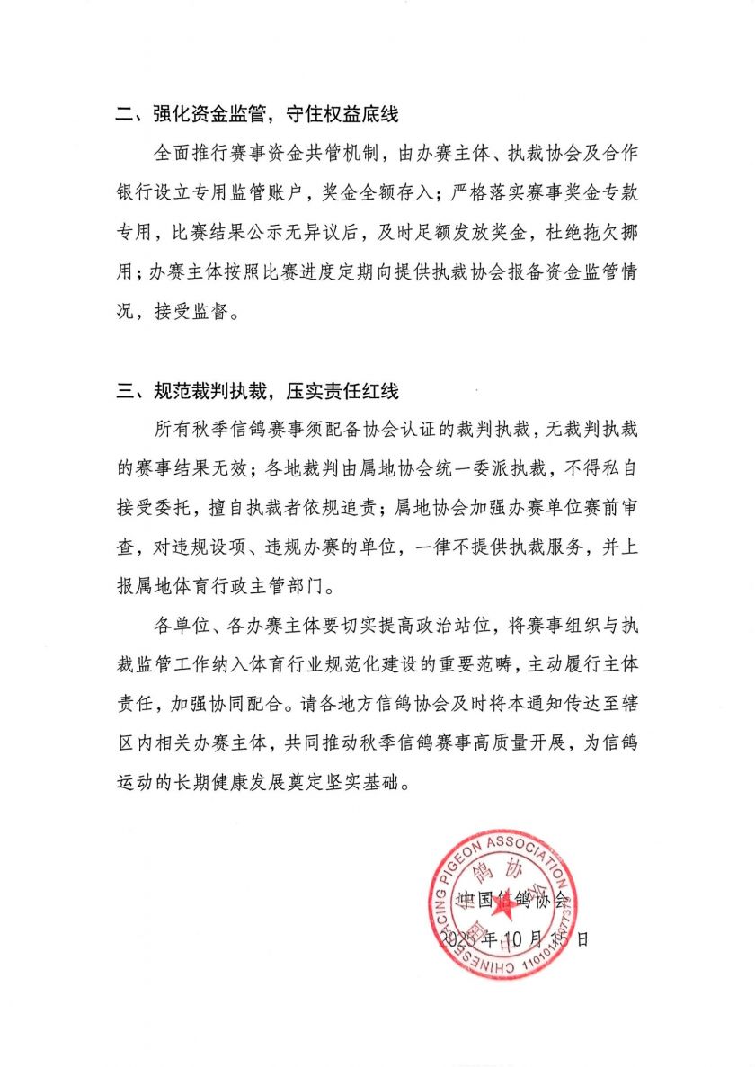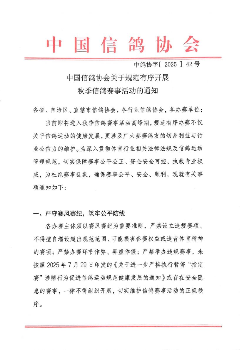 中鸽协再发通知:严禁设立违规赛项!规范有序开展秋赛!