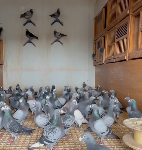 其实我的鸽棚的空间不大,密度特别高,可能比某些公棚的密度都高。我的鸽子其实是一种混养,所以我的小鸽子也没地方去分棚,我也不管它。小鸽子从小就跟大鸽子去拼着抢食,所以按照以前的公棚饲养标准,我认为我这样养也是一种好事情。因为小鸽子会抢食也不怕被饿着。但是现在公棚也在提升,小鸽子去了以后有单独的饲养笼,饲养员也精心照顾和管理。我这一套也要继续改进了,有时间有能力的情况下也要不断去提升,人不能抱着一个错误去永远当真理去对待,都要去进步。