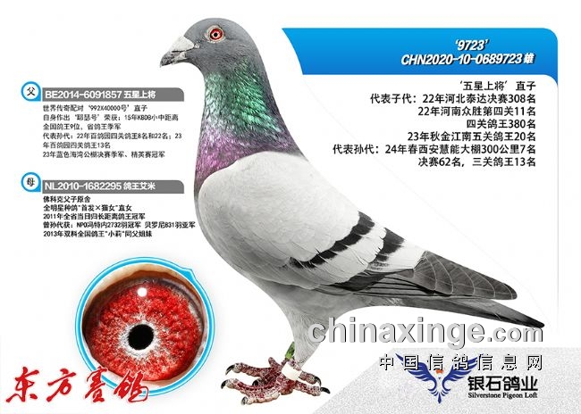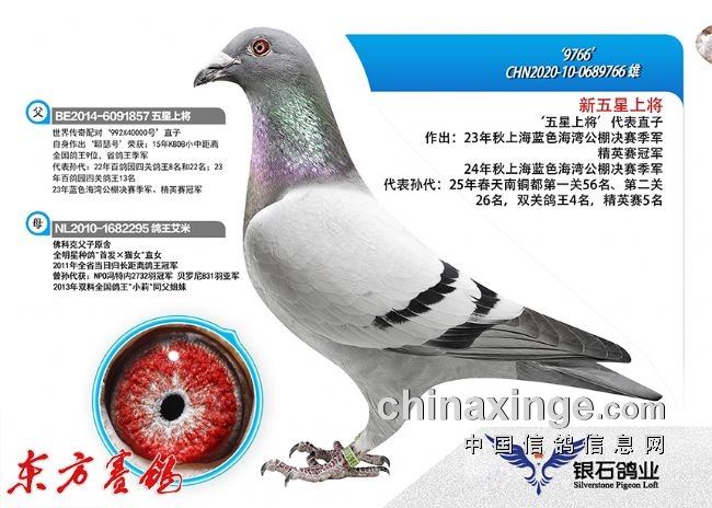经过二十载精心培育,银石鸽业已将自身的实战精英与利奥、罗杰.泰斯、范登布克等世界级的名鸽名血完美融合,继续在开尔、神齐、阳光等中国顶级赛场征战,再创银石新辉煌!