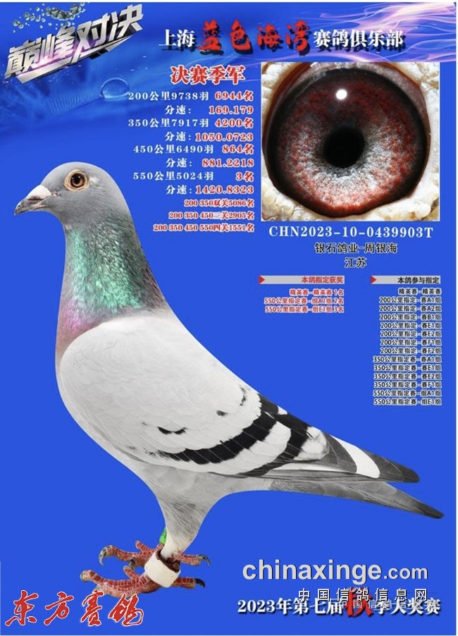 8、浙江杭州鸽友使翔——23年浙江盛世鸽王4名。